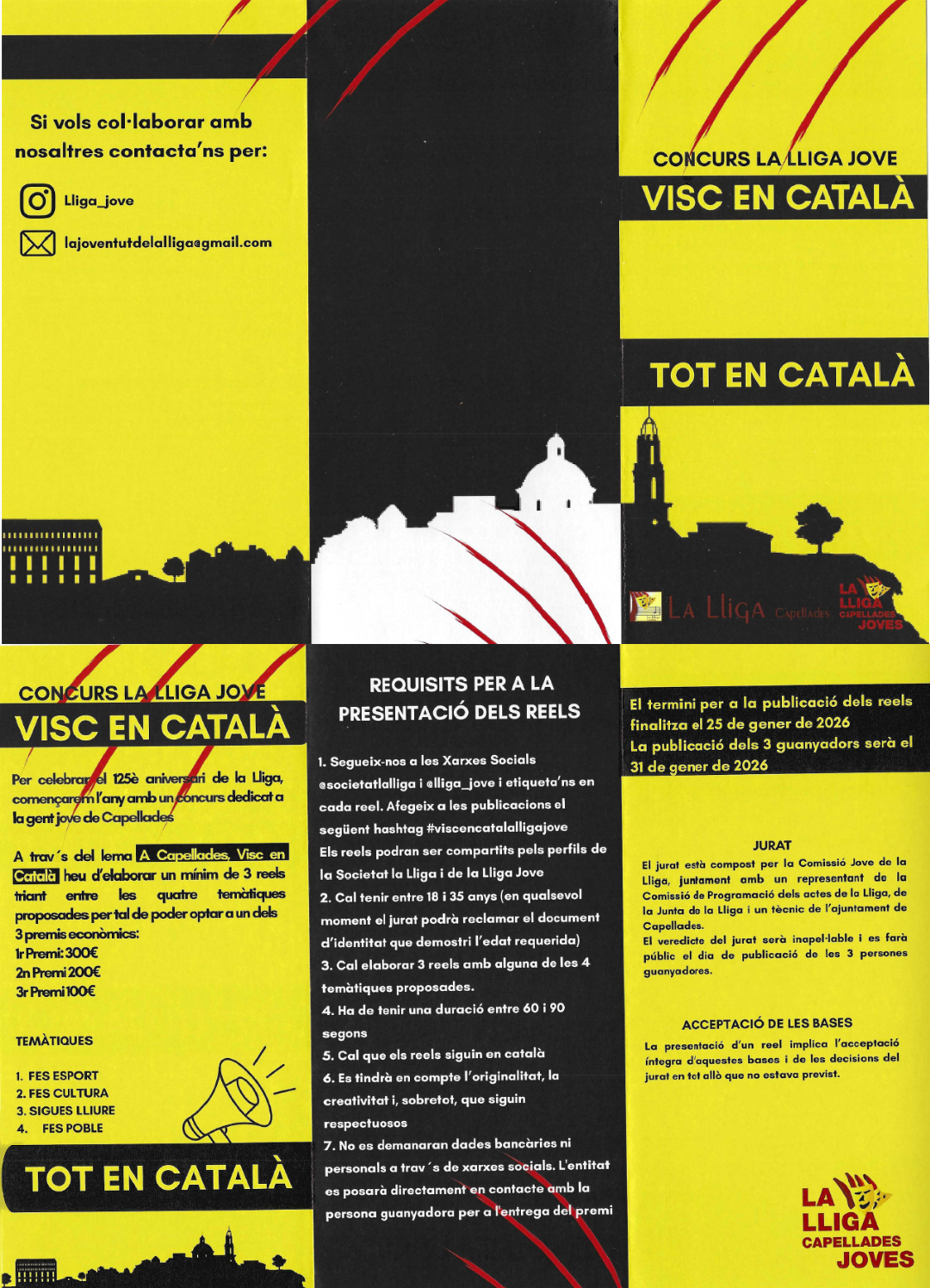 La Lliga fa 125 anys al 2026 i volem fer un concurs de REELS dedicat a la gent Jove de Capellades!